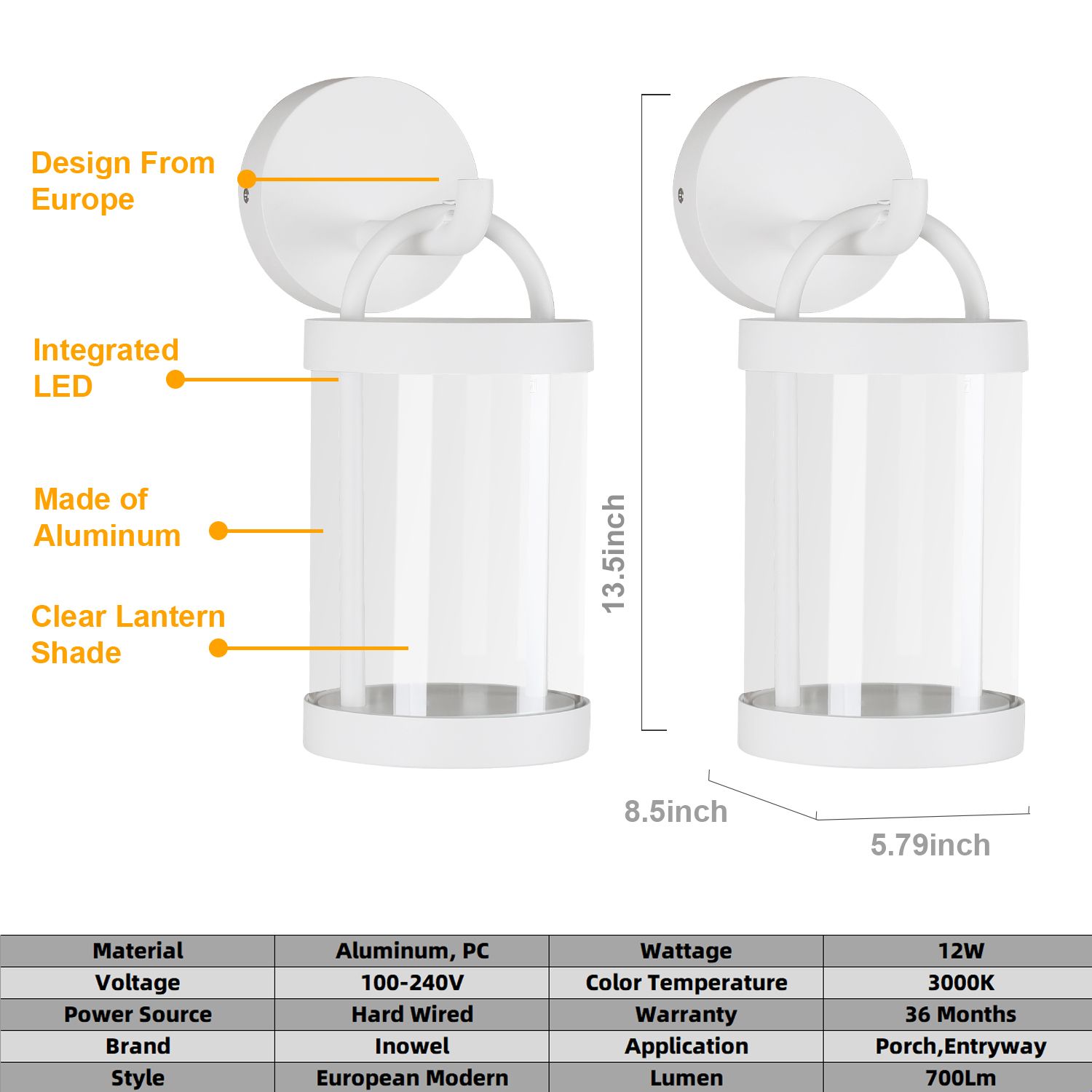 Inowel Lights Outdoor Wall Sconce Lantern Exterior IP65 Waterproof LED Wall Light Classic Wall Lamp Round Lighting 32333