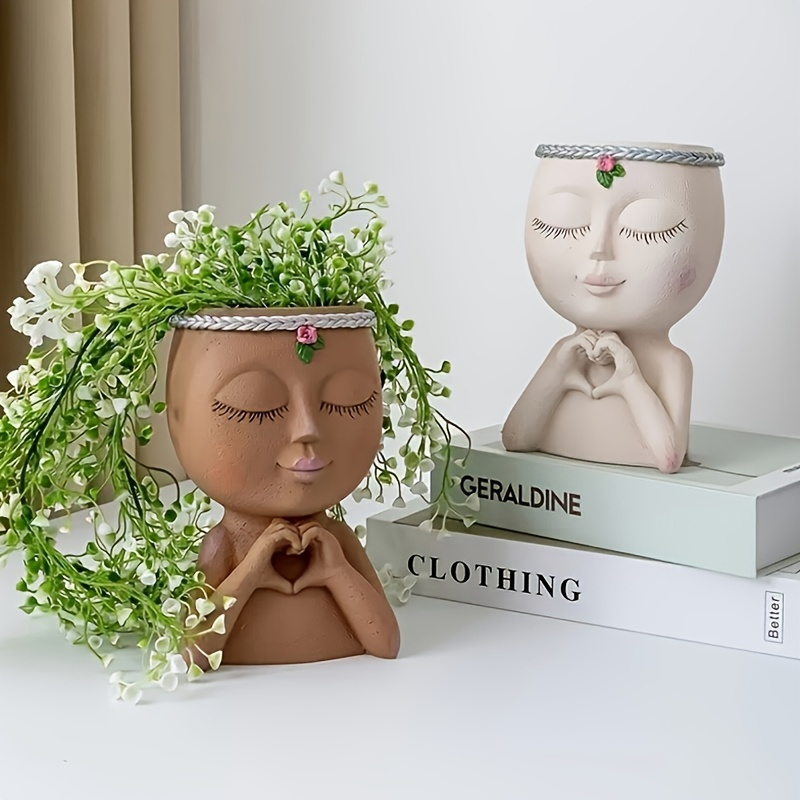 Home > 1pc Figure Flower Pot; Women Face Statue Vase Planter Ornaments; For Indoor Outdoor Home Decor Garden Patio (4.7*7.3*3.4in)