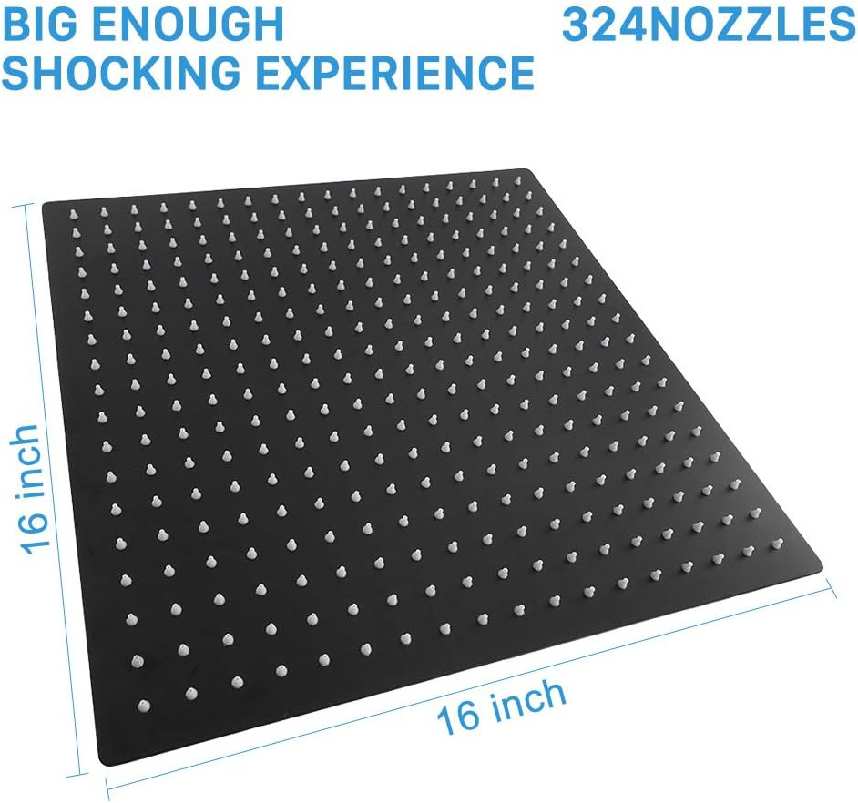 16 by 16 inches Larger Square Shower Head Offering a good coverage to soak your entire body, giving relaxing shower experience.
