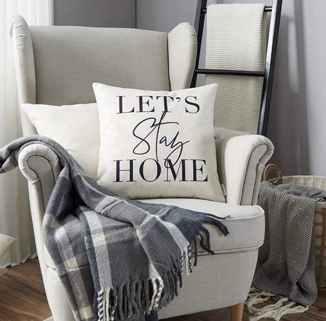 Throw pillow cover 18x18inches; "Lets Stay Home" modern cushion cover Throw pillow cover 18x18inches; "Lets Stay Home" modern cushion cover Throw pillow cover 18x18inches; "Lets Stay Home" modern cushion cover