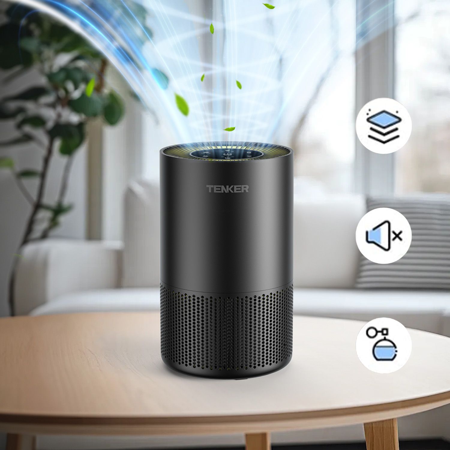 1. [Say Goodbye to Polluted Air]TENKER AP-6980 air purifier adopts 360° air intake and upgraded vortex technology which can effectively filter various polluted odors, capture dust and release fresh air. The air purifier for home covers an area of up to 1300ft², with 4 air changes per hour in 325ft². Modern design fits any space and is perfect for adults, pets, children, the elderly, and anyone who wants to improve air quality.