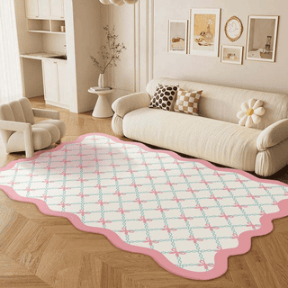Pink scalloped-edge bow patterned carpet, area rug, stain-resistant and easy to clean