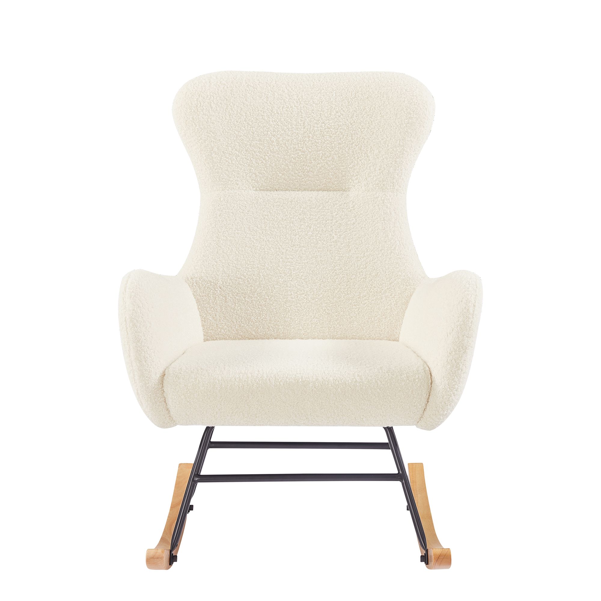 Products:rocking chairUpholstery Material:teddy fabricUpholstery Color:cream whiteSeat & Back Fill Material:foamFrame Material:metalAssembly Required:yes
