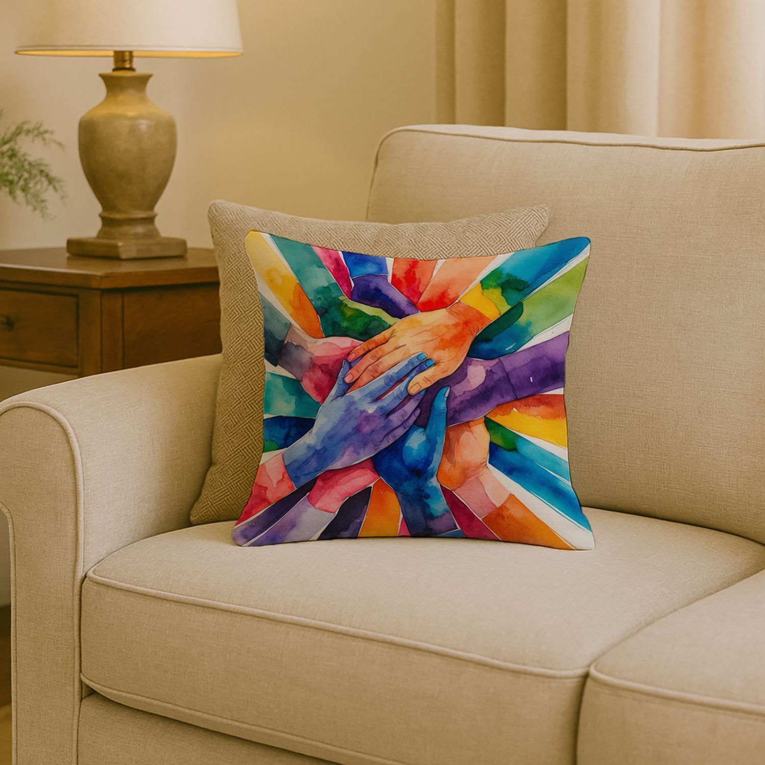 Together, Stronger Pride Throw Pillow Machine Washable, Indoor Outdoor Decorative Pillow for Couch, Bed or Patio, 18Hx18W