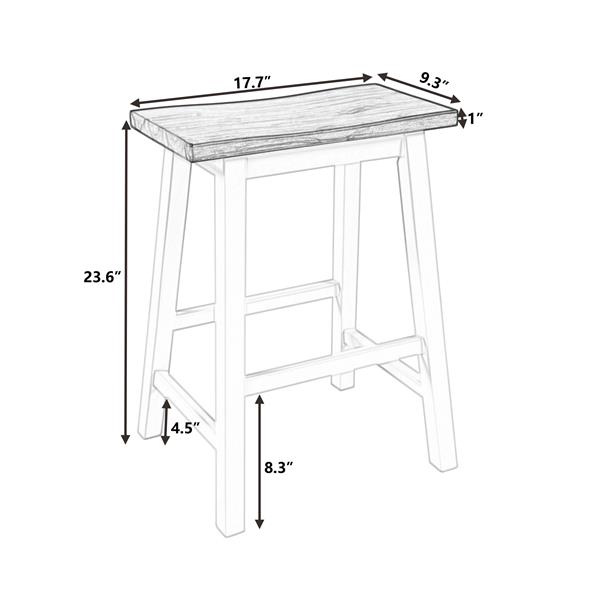 DescriptionThis chaise lounge chairs are made of powder-coated aluminum and breathable PVC-coated polyester fabric, which is both durable and comfortable. It can be placed indoors or outdoors , such as a beach, yard, patio, pool, office sitting area, or home sitting area. This chaise lounge set has five reclining positions for maximum comfort ,while you enjoy the nice weather.Weight & DimensionsOverall Product Size(one chair): L 75" x W 22" x H 12" (191 x 55 x 31 cm)Floor To Seat Height: 12" (31 cm)Back Length: 31.5" (80 cm)Overall Product Weight (one chair) : 13.89 lbs. (6.3 kg)SpecificationProduct Type: Chaise LoungeFrame Color: BlackFrame Material: AluminumFabric Color:GrayFabric Material: TextilenePieces Included: 1 x Lounge Chair;1 x InstructionBackrest tilt adjustment: Yes,5 adjustable positions,Maximum Angle 180 degrees, minimum 110 degreesCapacity Of People/one chair: 1Durability: Rust Resistant;Stain Resistant;Weather ResistantWeight Capacity/one chair: 250 PoundsSupplier Intended Use: Residential UseAssembly Required: YesTips:1.The product has color difference, especially the gray style.If you care about the color, don't buy it.2.Any modification or failure to follow the recommended care will void the product warranty.[Perfect for Small Places] Owning a small kitchen or dining room? Then this dining Stool will perfect for you. Both 2 stools can be tucked under any standard table when not in use to save space. Also, because of the design, the stools can be put standing against the wall to save room as more as possible.[Counter Height Bistro Dining Stools] To be bar dining stools set, this set includes 2 stools. Built with strong stretchers' supportive design, it provides not only extra strength for the stool but also a special tasteful air of charm to your dining room.Enjoy your leisure time with this bar stools set.[Premium Construction Design] Built with high quality solid rubber wood legs, this dining stools is designed to hold 3 lbs maximum capacity and last for years. Sturdy block underneath the cushion provides added durability.[Comfortable Dining Stools] Both stools are with 2.4-inch curved top, which provide better ergonomic feeling when seating. Also, each stool comes with footrests to offer extra rest when having a dinner with this set.[Dimensions and Warranty] Dining Stool: 17.7x9.3x23.6inch(LXWXH); 2 stools in one box. Please feel free to contact us if any issues.Assembled Length (in.):18.00Assembled Width (in.):18.10Assembled Height (in.):45.60Weight (lbs.):17.00