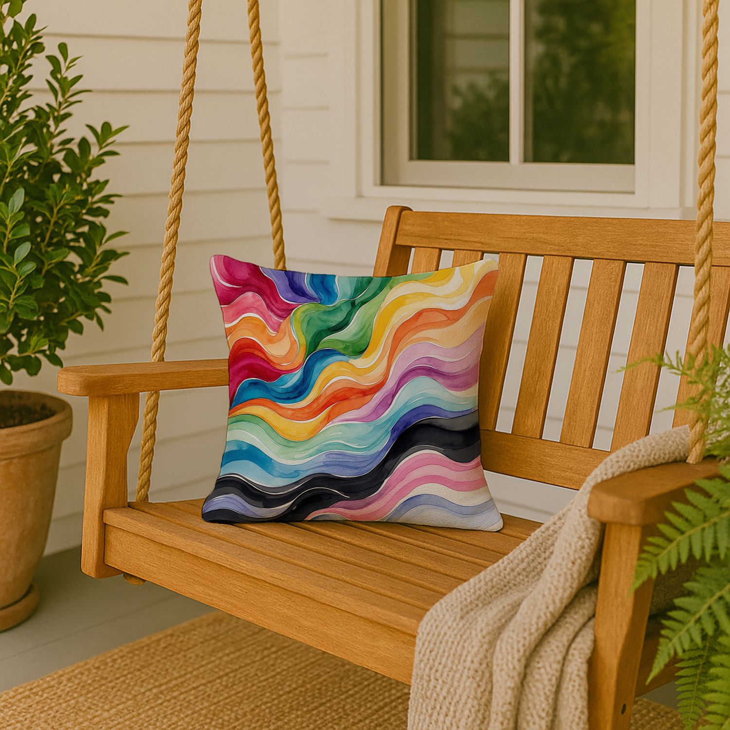 Progress Pride Waves of Unity Throw Pillow Machine Washable, Indoor Outdoor Decorative Pillow for Couch, Bed or Patio, 18Hx18W