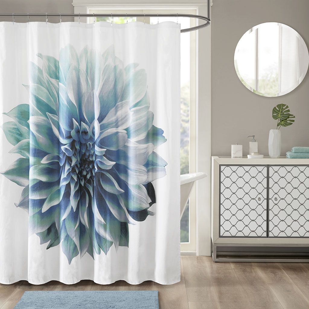 Breathe a new life into your bathroom with the Madison Park Norah Cotton Percale Shower Curtain. This cotton shower curtain displays a photo realistic floral print for a beautifully stunning look. The vibrant hues add a fresh splash of color to your bathroom, while the 200 thread count provides an alluring textured feel.