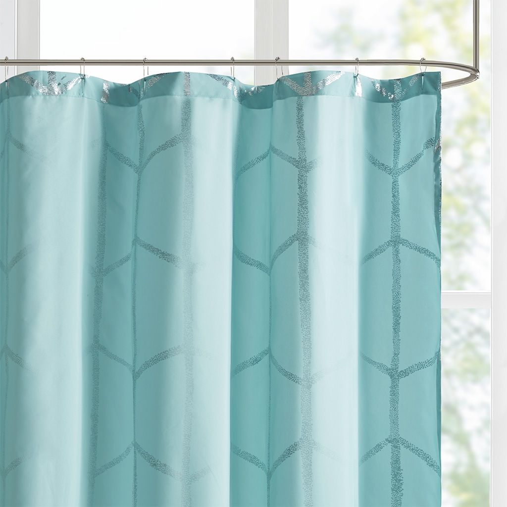 Freshen up your bathroom with the enchanting style of the Intelligent Design Raina Printed Metallic Shower Curtain. Flaunting a geometric metallic print, this stunning shower curtain creates a fun and eye-catching look! Machine washable for easy care, vivid hues brings a hip and modern flair to your bathroom.