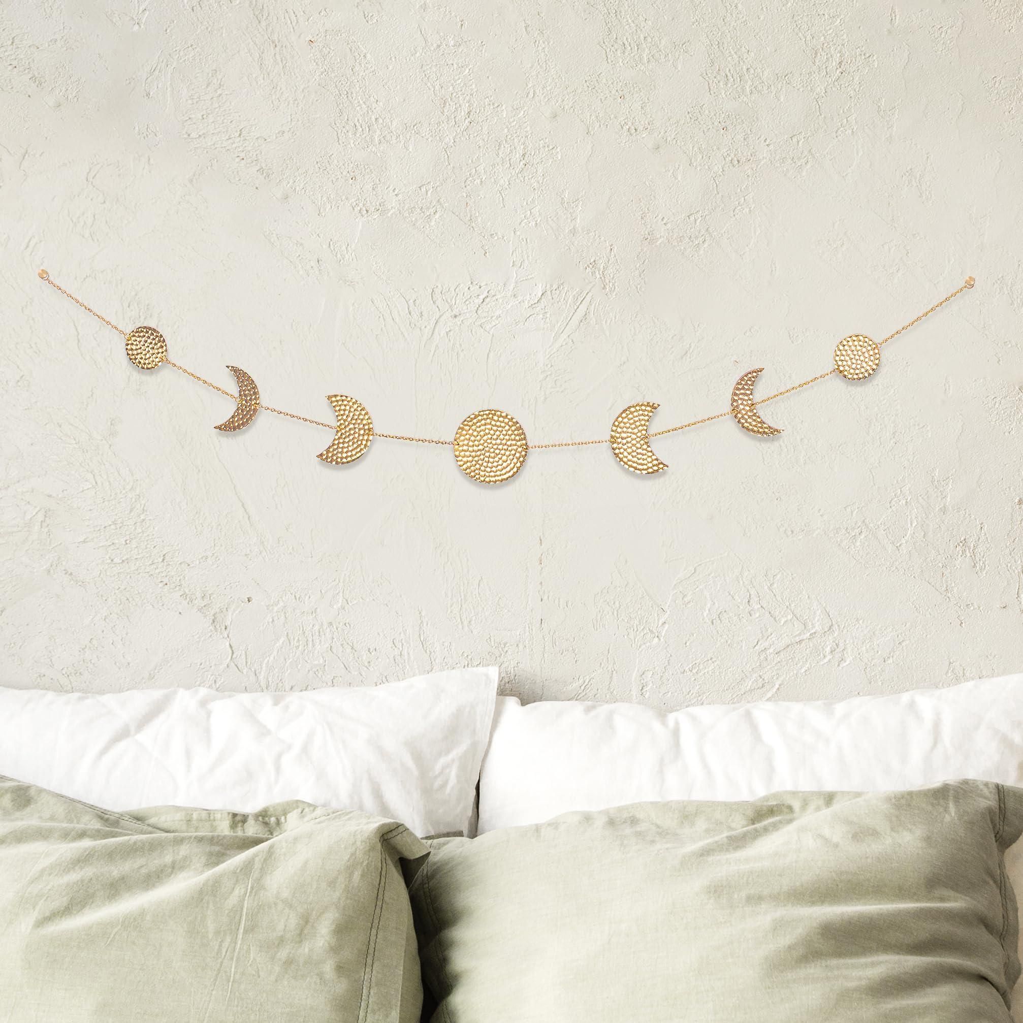 Home > Moon Phase Wall Decor Hanging Garland 7 Gold Hammered Metal Boho Wall Decor Moon Garland 34 inch Celestial Phases Moon Decor Moon Phases Wall Art