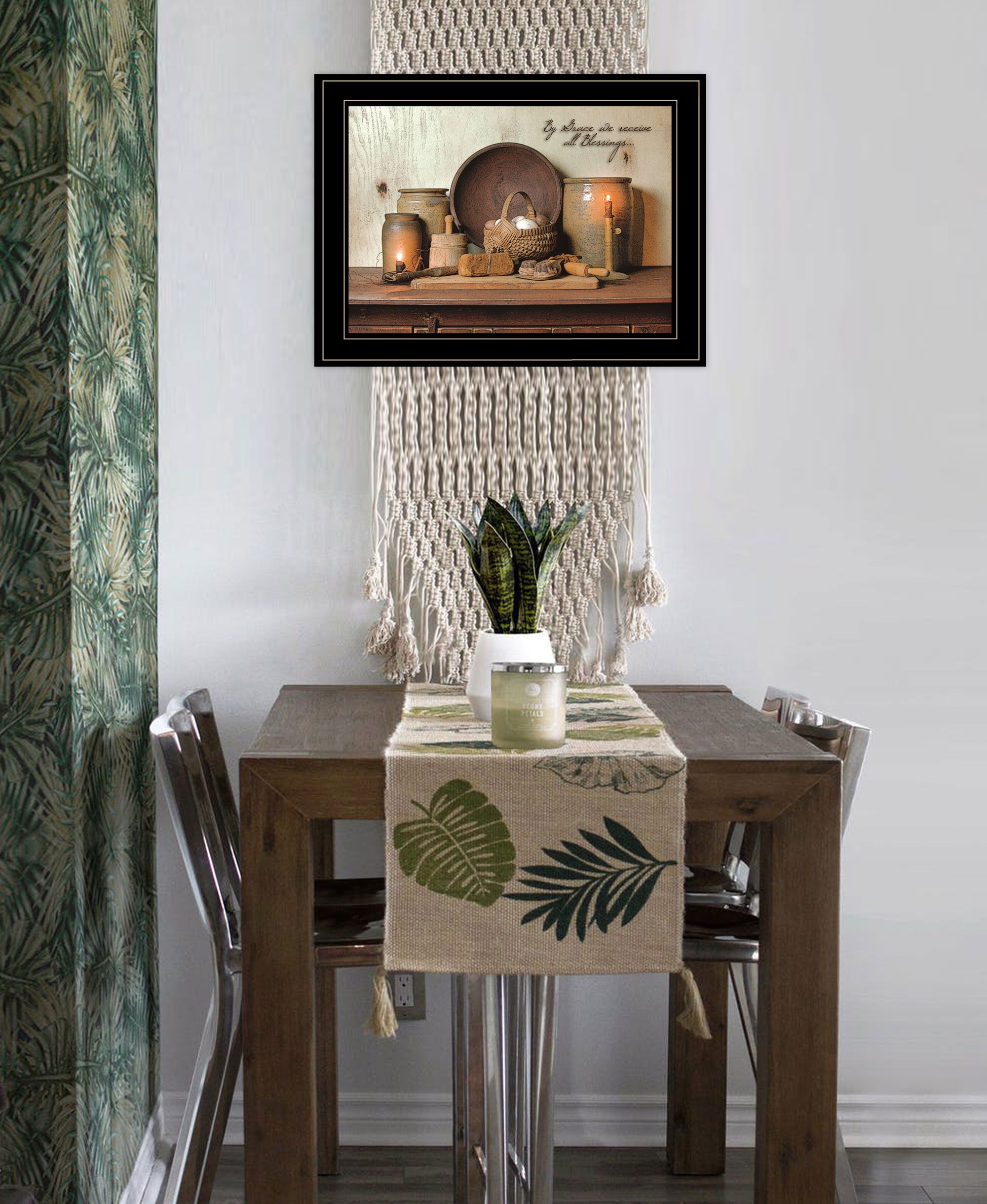 "By Grace" by artisan Susie Boyer. This decorative black framed 1-(19x15) of primitive kitchen items is excellent for any country home. Prints of crocks, coffee grinder, wooden bowls, and baskets Prints are textured, no need for glass. Framed prints arrive ready to hang. Crafted By Skilled American Crafters And Coated With A Fade-resistant Texture, This Piece Has A Canvas-like Appearance That Will Last For Years To Come. Invest In A Piece That Is Truly One-of-a-kind.•Transform your walls with this stunning piece of art and bring a touch of modern elegance to your room. This stunning piece will not only add visual interest to any room but it's minimalist design will bring a sense of serenity to your space.•Tired of dull, empty walls in your home? We believe that walls should inspire, not bore. That's why we offer a wide range of wall art to suit any space from bedroom and kitchens to office and beyond. Give your walls a facelift with our printed arts and transform your space into a stylish and inviting home.•This framed wall art is hand-crafted in the USA of high-quality wood with the surface of the art coated with a fade-resistant texture which gives it a canvas-like appearance for many years of enjoyment in your home.•Bring a pop of colour and style to any room with our fully assembled and ready-to-hang wall art. With a wide selection of decorative pieces to choose from, you'll easily find the perfect match for your personal taste or to give as a thoughtful gift. Don't miss out on the opportunity to add some unique charm to your space.•Experience the unmatched quality and durability of American-made craftsmanship with this individually hand-crafted wall decoration art. Skilled crafters put their expertise into every piece to ensure it will stand test of time and bless your eyes for years to come.